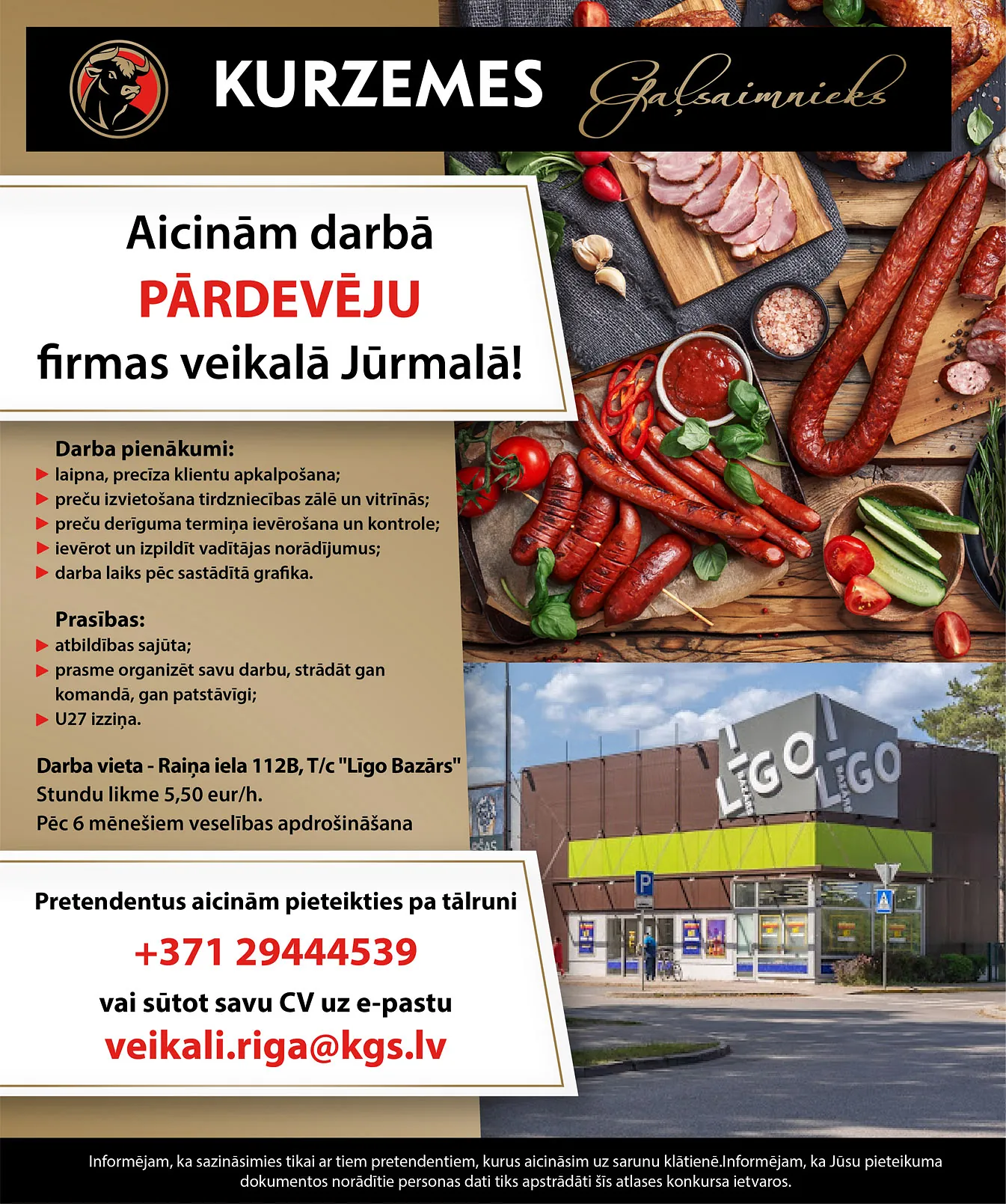 Aicinām darbā PĀRDEVĒJAS Jūrmalā